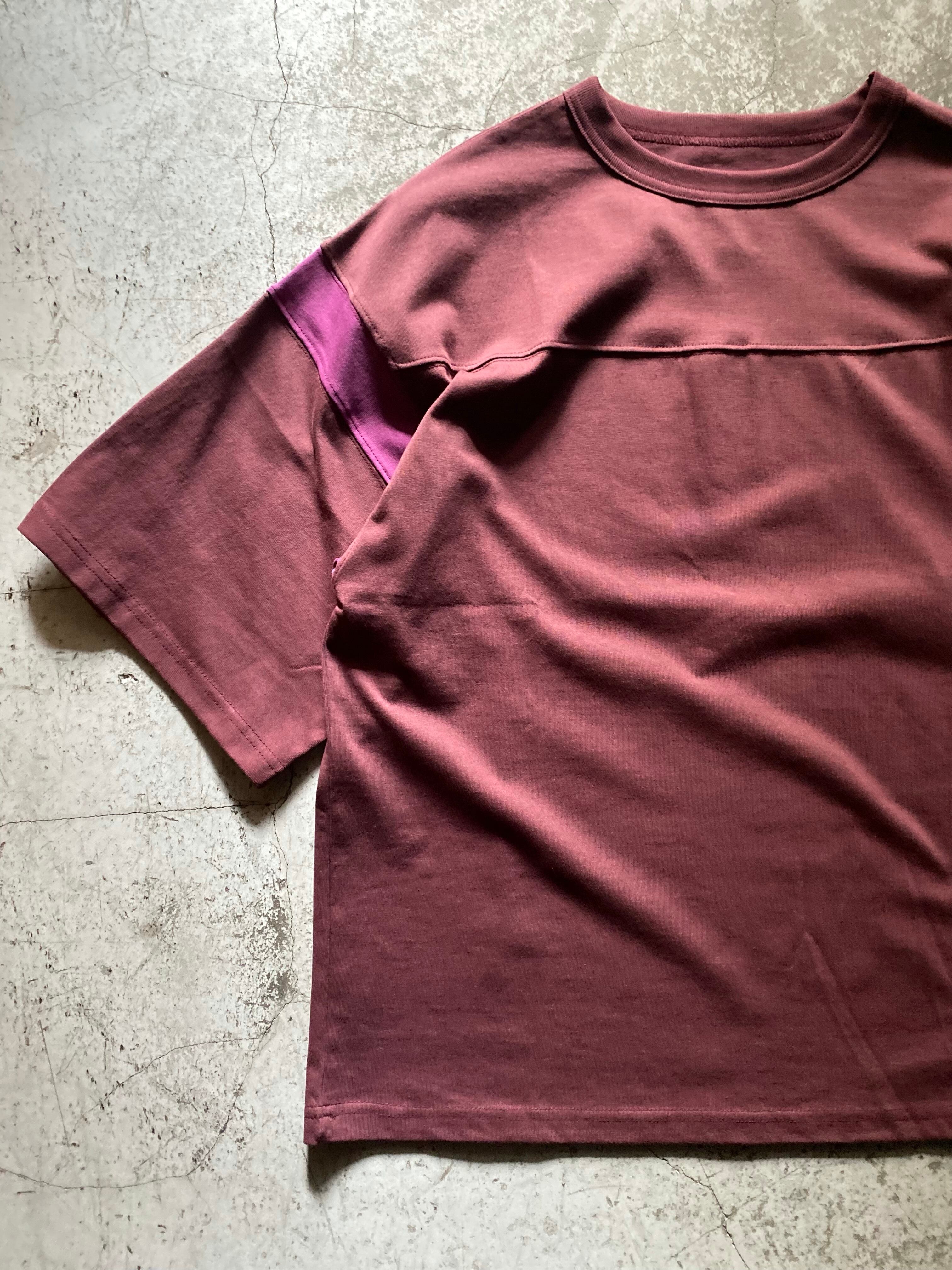 身幅をたっぷりとった配色が素敵なフットボールT。野暮ったくなりがちなフットボールTをトロミのある綺麗な素材と配色で大人っぽく仕上がってます。つまらなくなりがちな夏の服装に爽やかにちょこっとだけスポーティーに良いお兄さんTシャツです。