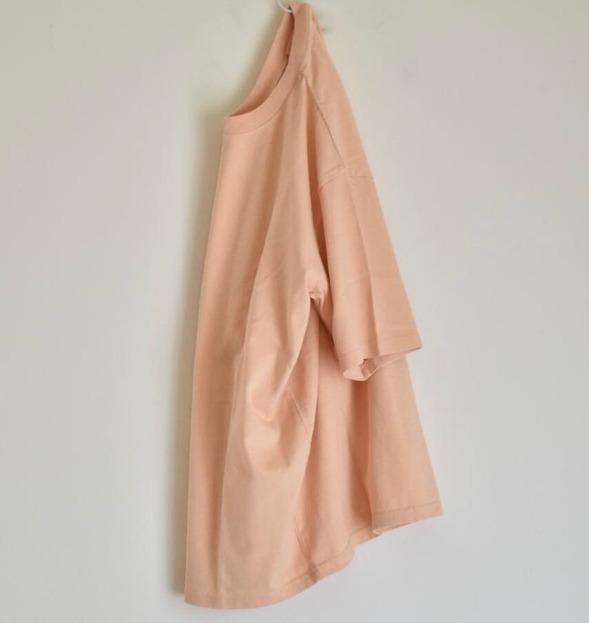 和歌山にある希少な吊り編み機で作られた生地を採用したややゆったりの落ち着きのあるTシャツです。肉厚なのに柔らかいのが吊り編み機の特徴で空気を加えながら糸にストレスなく編み立て独特の風合いに仕上がってます。色味もフェード感ある綺麗な色で沢山きて経年変化も楽しめるハマる1枚です。