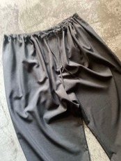 スピンドルでギャザーが寄るのは前部分のみで、バックスタイルはすっきりとした無駄の無いシルエットが魅力のイージーパンツです。