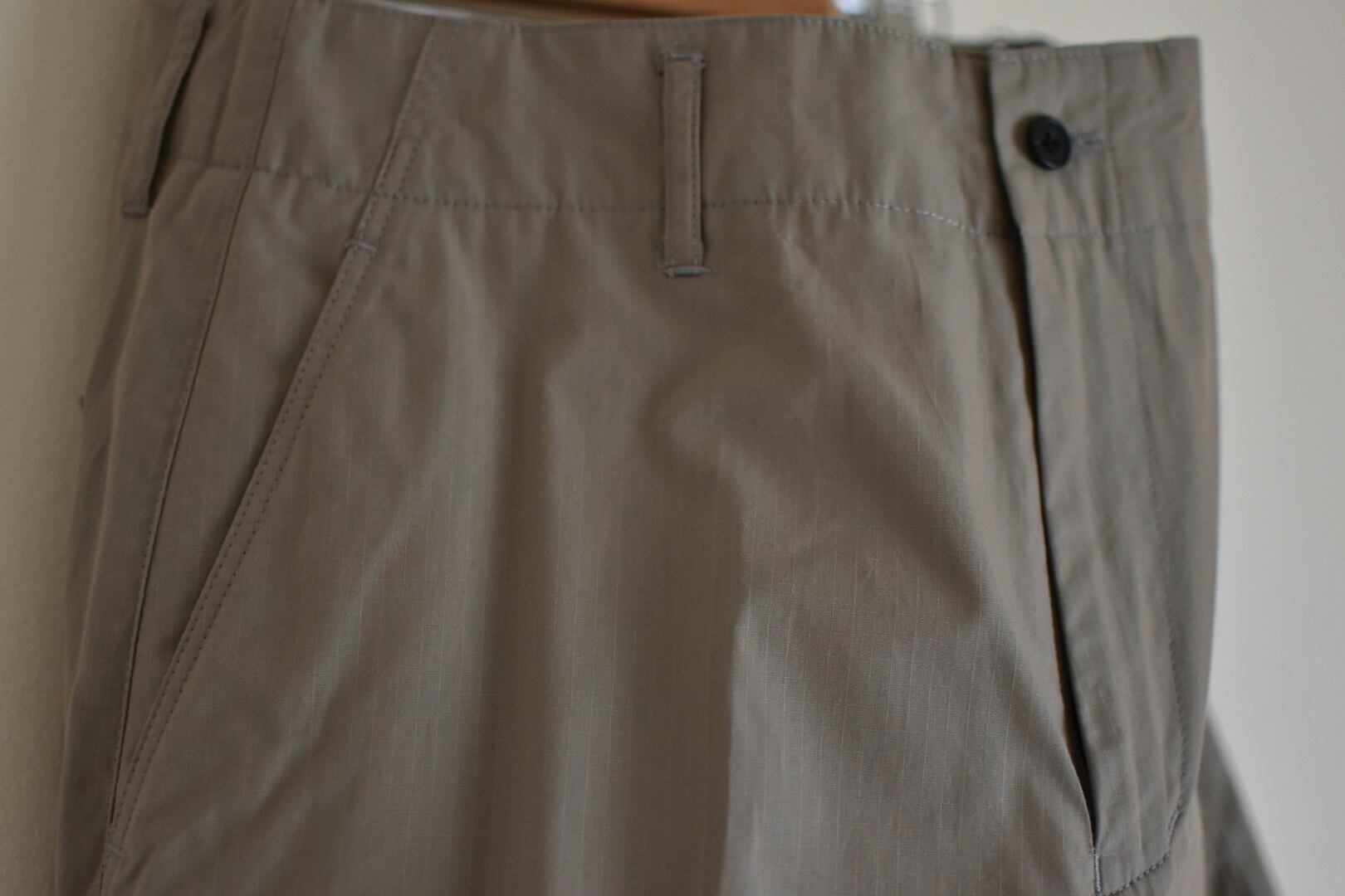 リップストップは通常の平織りよりも強度が高く安心感がありますが、しなやかな糸遣いにより大変肌馴染み良く柔らかな穿き心地のパンツに仕上がりました。