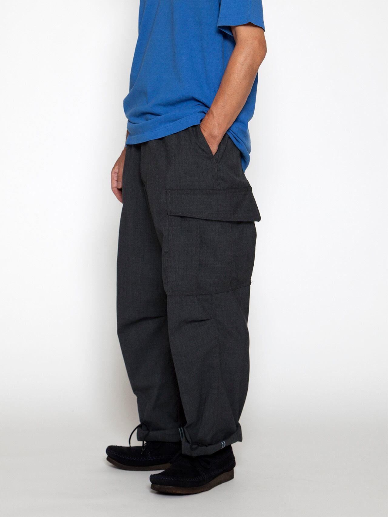 決して太過ぎず適度にゆったりとしたテーパードシルエットで、膝にタックが入ることでミリタリーパンツらしさを失わず、ブランド独自のシルエットに仕上げています。