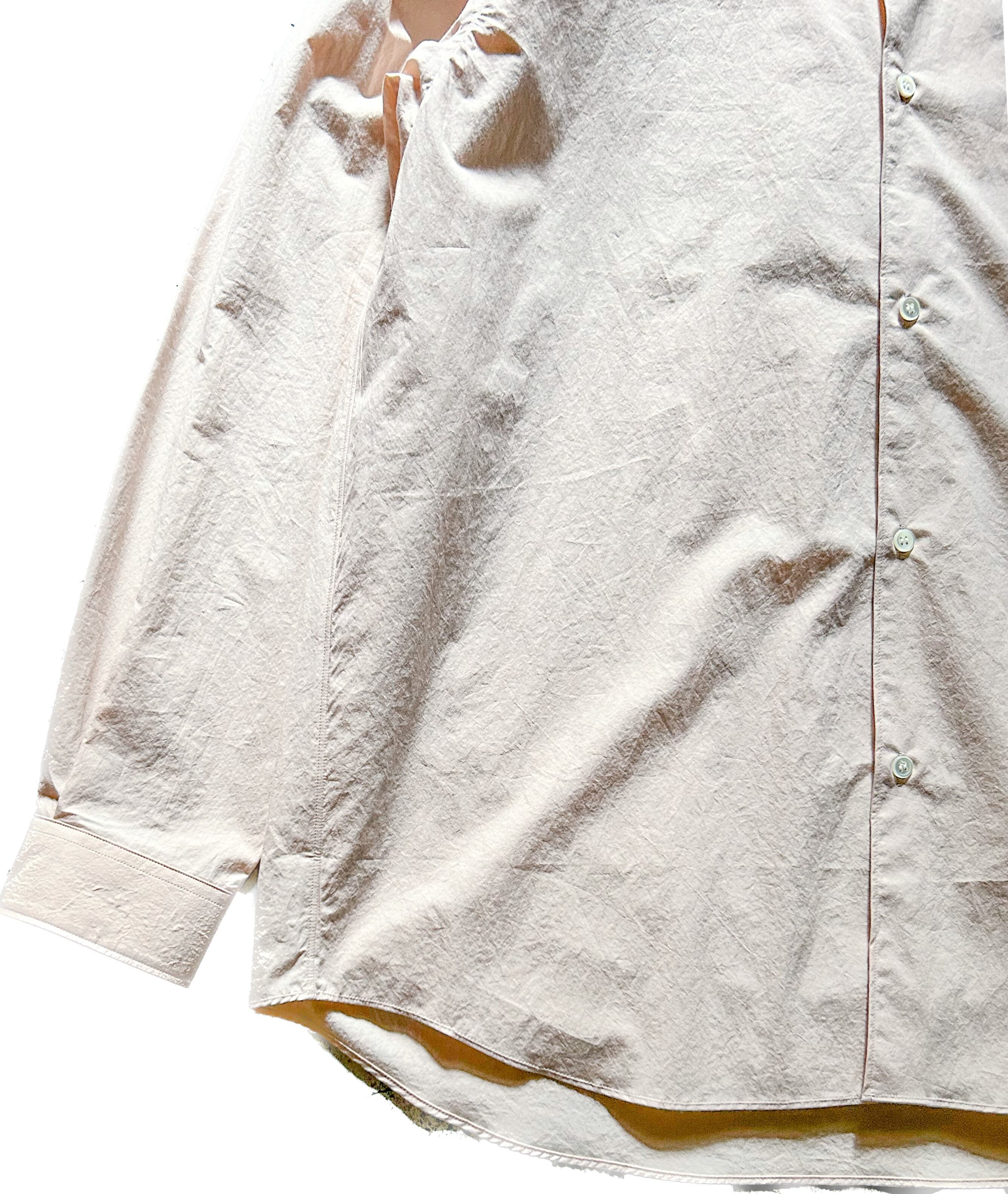 近江晒しを施した80/1のタイプライター生地を使用したゆったりとしたシルエットのレギュラーカラーシャツ