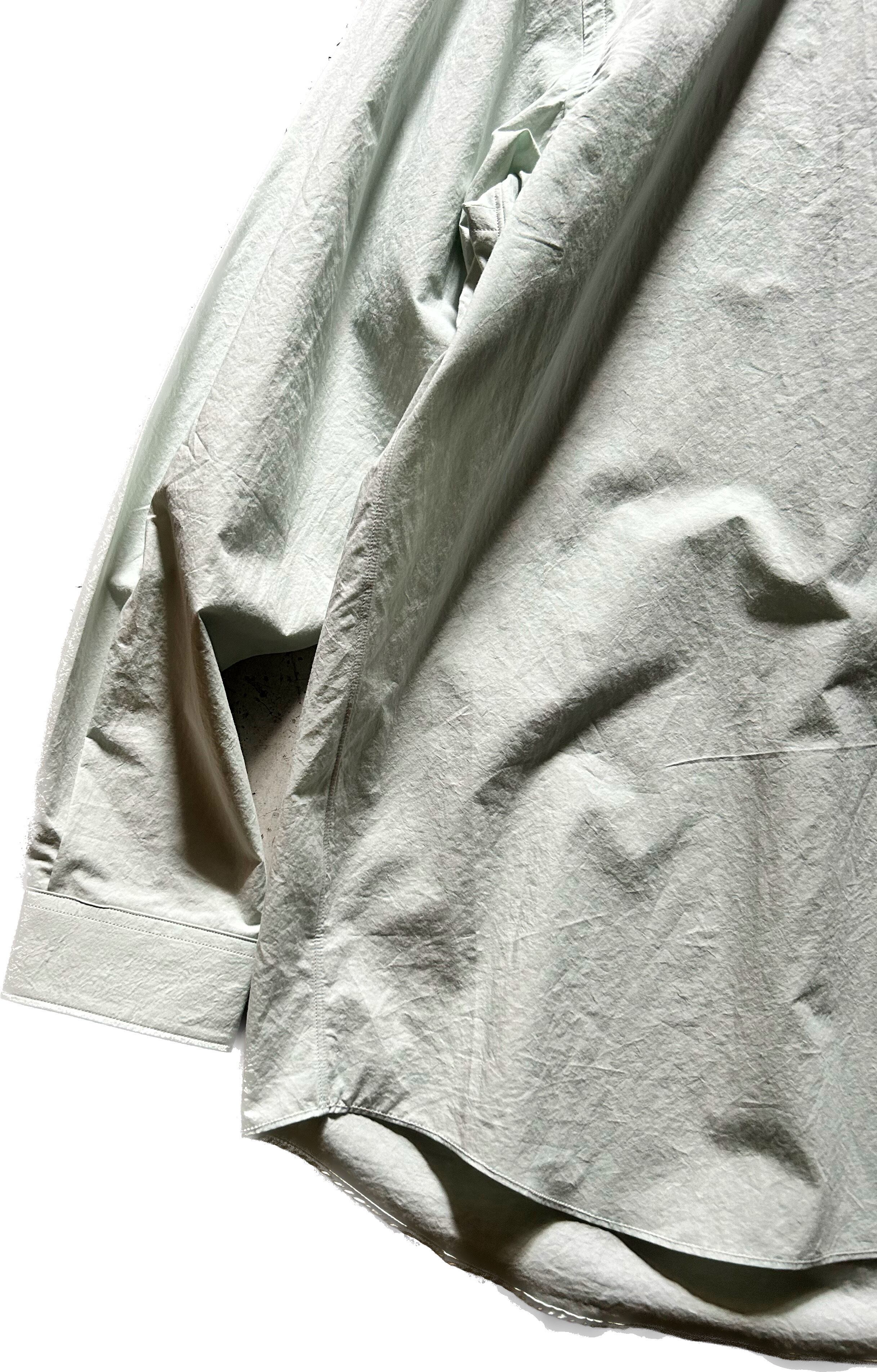 近江晒しを施した80/1のタイプライター生地を使用したゆったりとしたシルエットのレギュラーカラーシャツ