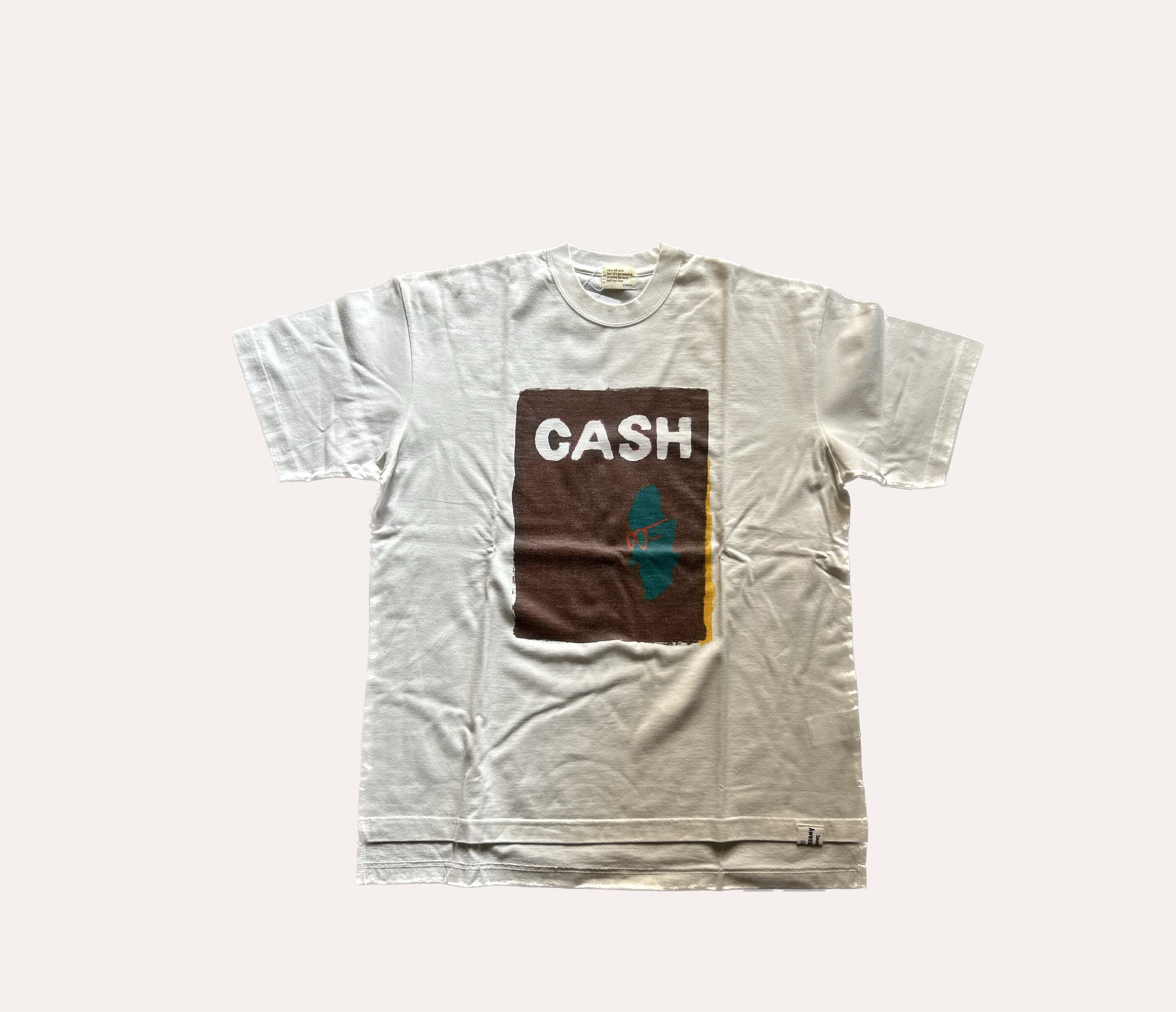 カントリー、ブルース、幅広いジャンルで殿堂入りしあらゆるアーティストに影響を与えたシンガーソングライター『ジョニーキャッシュ』を描いたTシャツ。