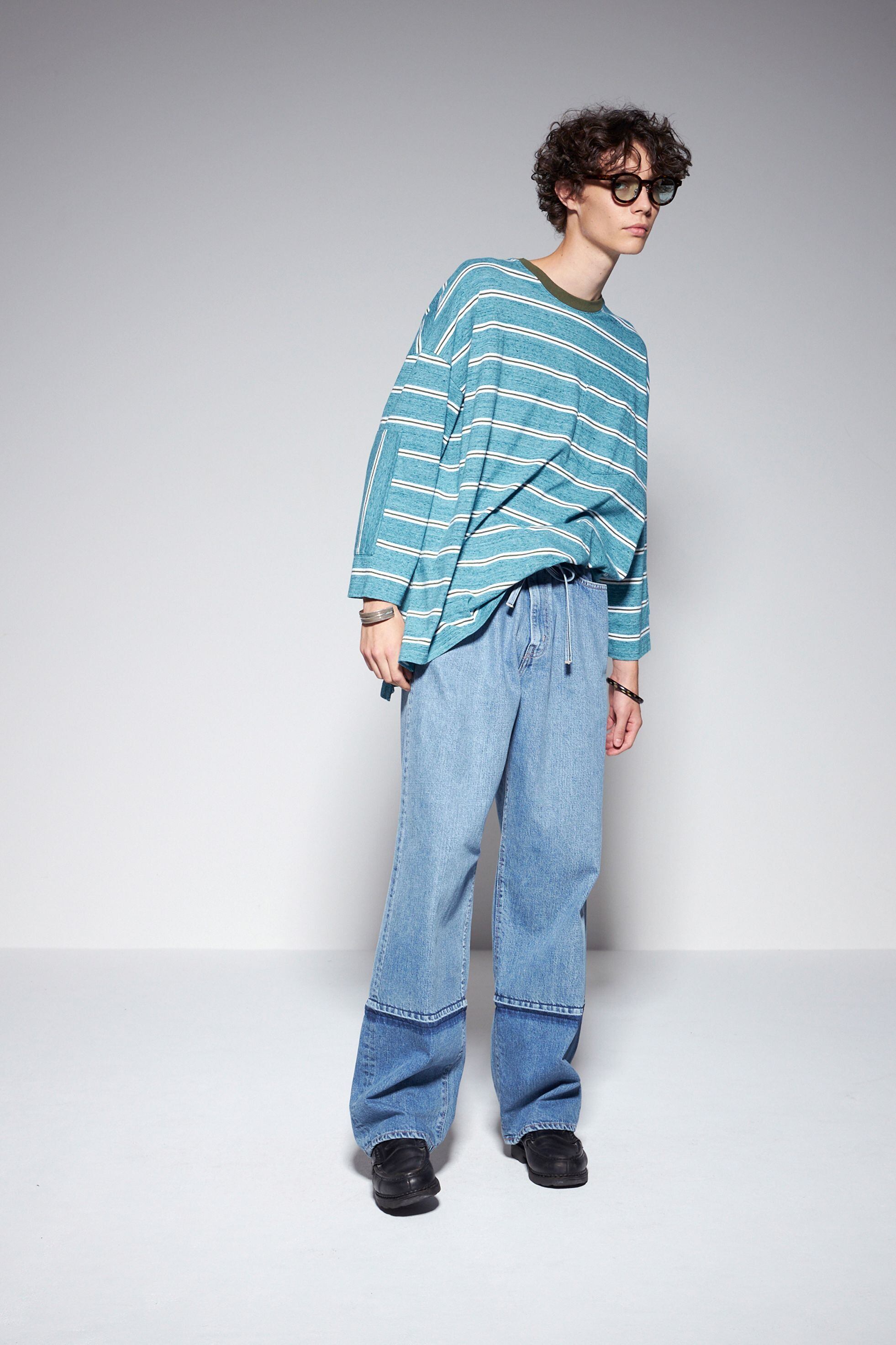 クテっとやれ感のあるヴィンテージライクな7部袖T、ブランドオリジナルのマルチボーダーが懐かしくも新しい印象です。