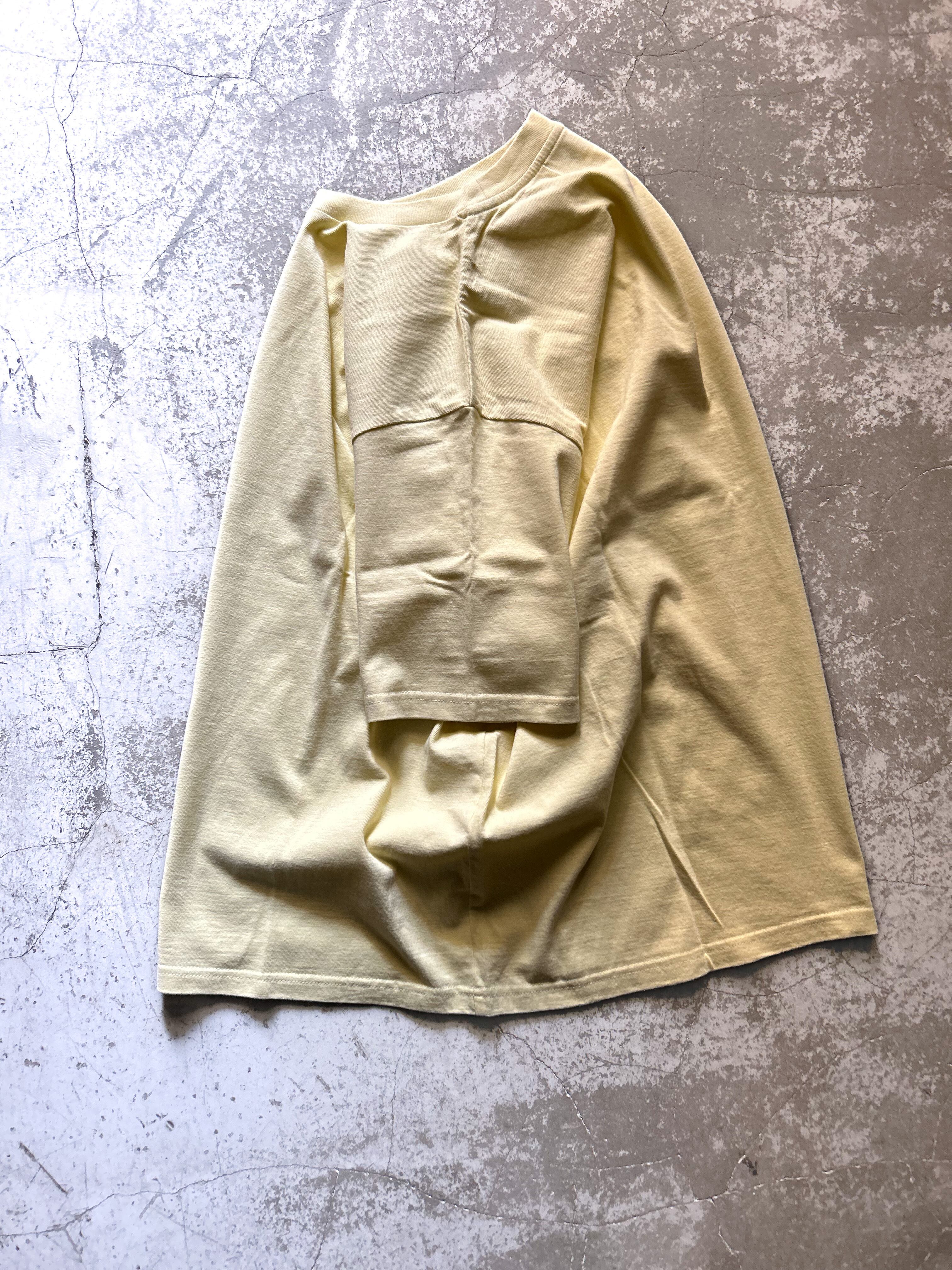 和歌山にある希少な吊り編み機で作られた生地を採用したややゆったりの落ち着きのあるTシャツです。肉厚なのに柔らかいのが吊り編み機の特徴で空気を加えながら糸にストレスなく編み立て独特の風合いに仕上がってます。色味もフェード感ある綺麗な色で沢山きて経年変化も楽しめる愛着のある1枚です。