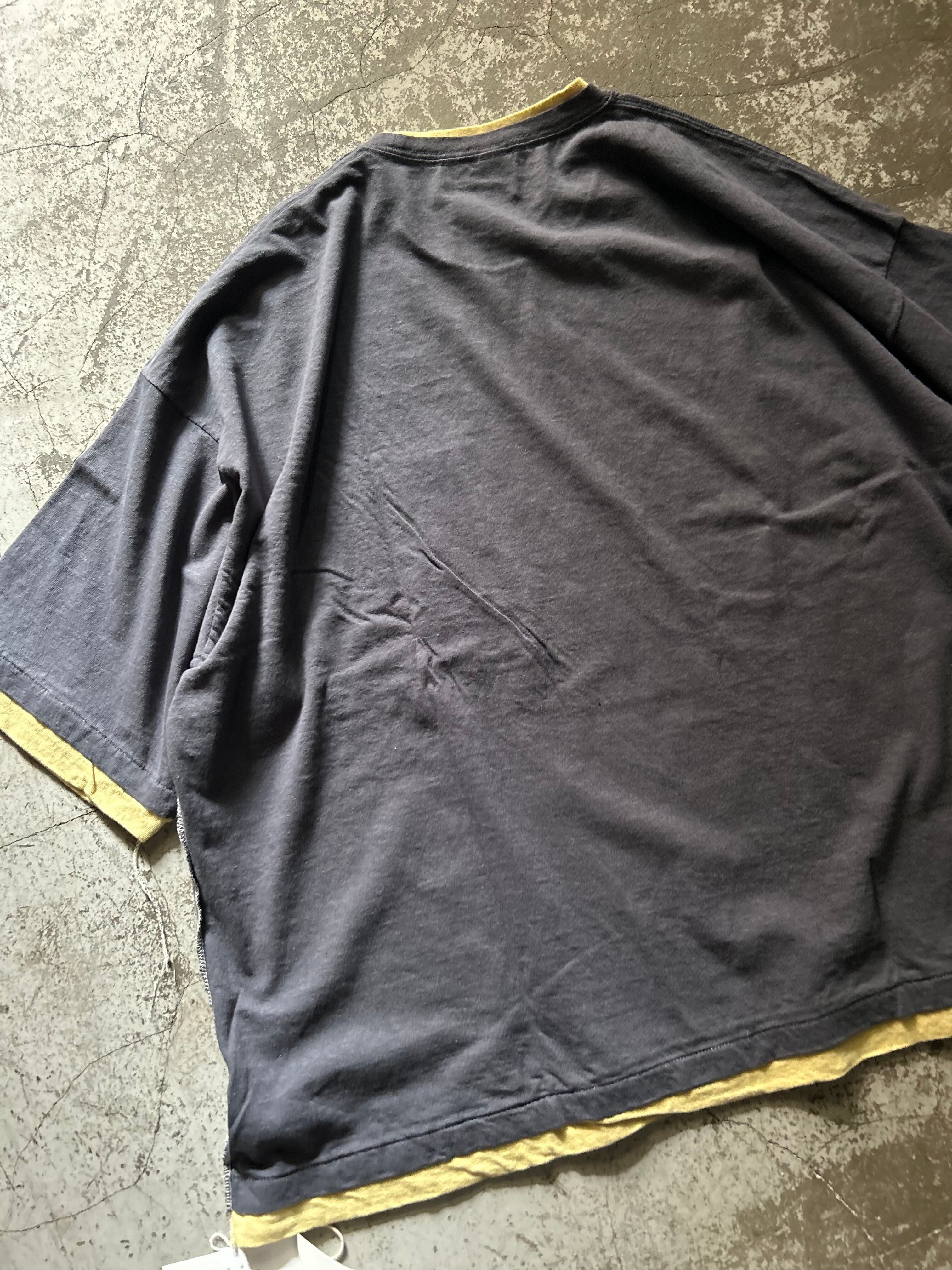 リンガーTEEのような見え方の袖、裾、襟に配色切り替えの入ったデザイン。アームのゆったりした独自の付け方とロックステッチが<縫流し>になっているのも全体的なヴィンテージ感を演出しています。糸は落ち綿を使い柔らかくこれもヴィンテージ感あります。