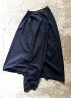 ほどよく変化のある後ろ裾のバックラウンドのデザインが重ね着した際の他のトップスとのバランスも良く使い勝手のよいアイテムです。