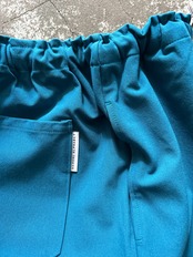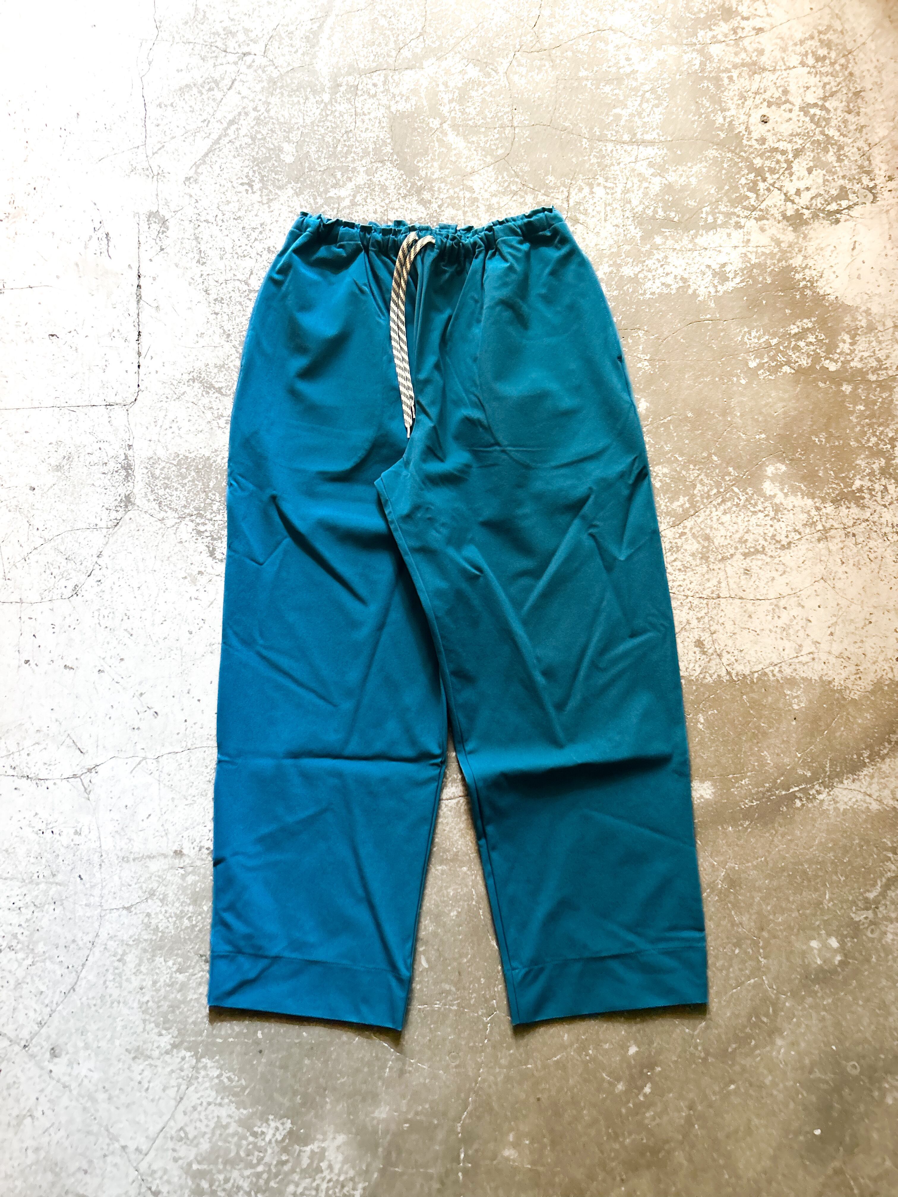 3本のナイロン糸で編まれた鹿の子組織ならではのハリ感と光沢感、肉感があり、ウエストから裾口までのワイドなシルエットで大人っぽさとリラックス感を持ち合わせています。