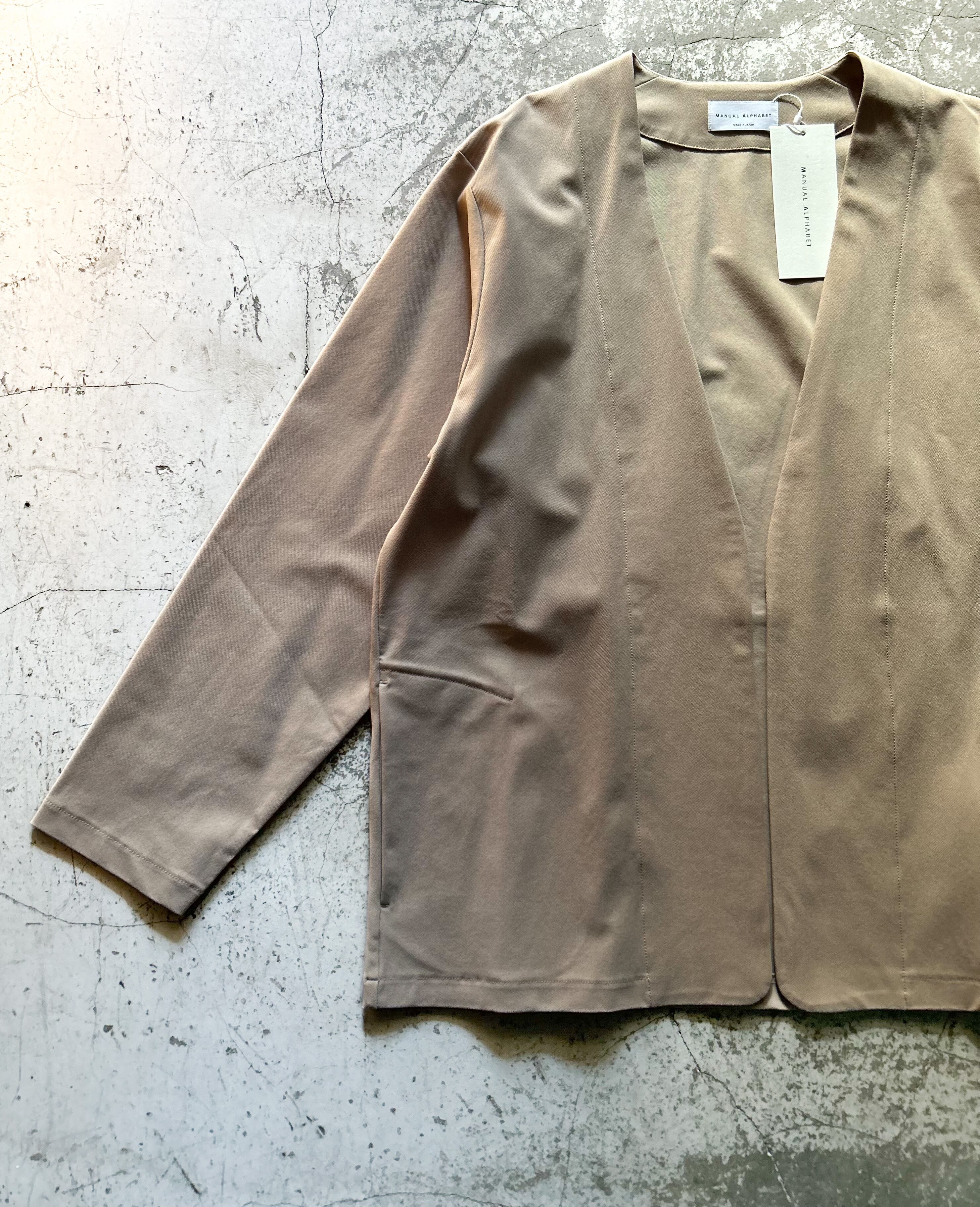 ストレッチ性と吸水性に優れたナイロンジャージー素材を使用した場面問わず使えるジャージー素材のカーディガン。
