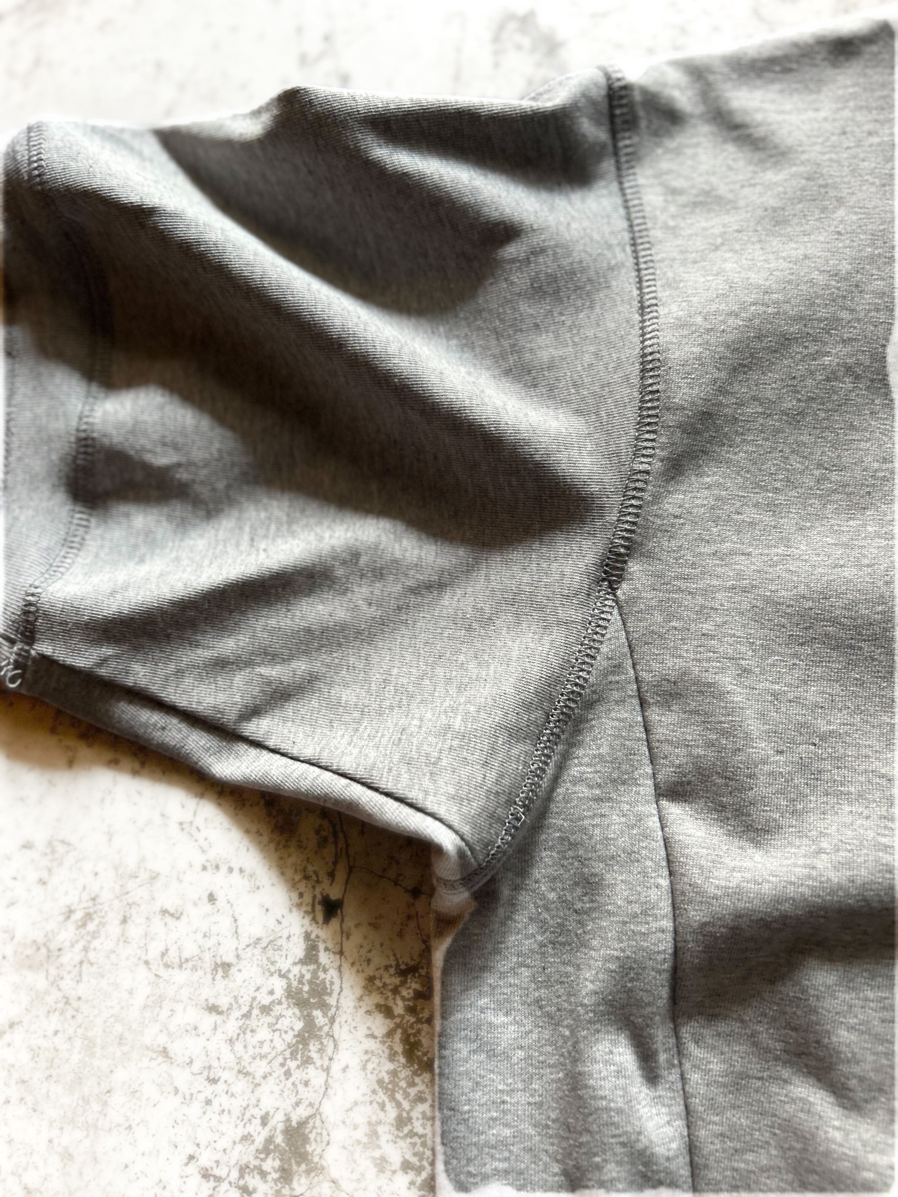 ビンテージで見かける裏起毛の半袖アイテム(夏には暑かった!!)をドライタッチのカットソー素材で表現しました。