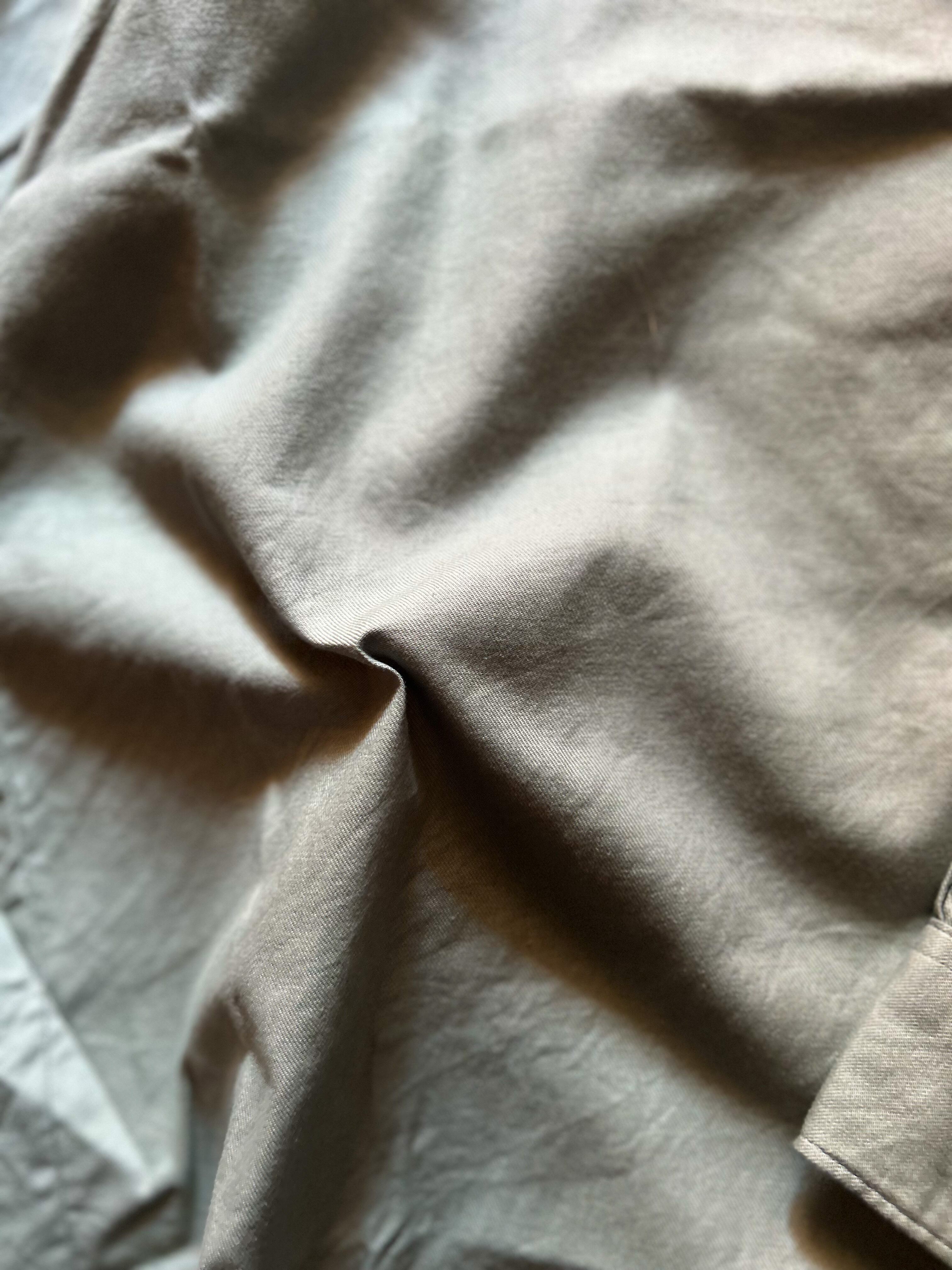 生地を揉みながら染色し、エアタンブラーで仕上げられているので、ふっくらとした膨らみのある素材感が特徴です。