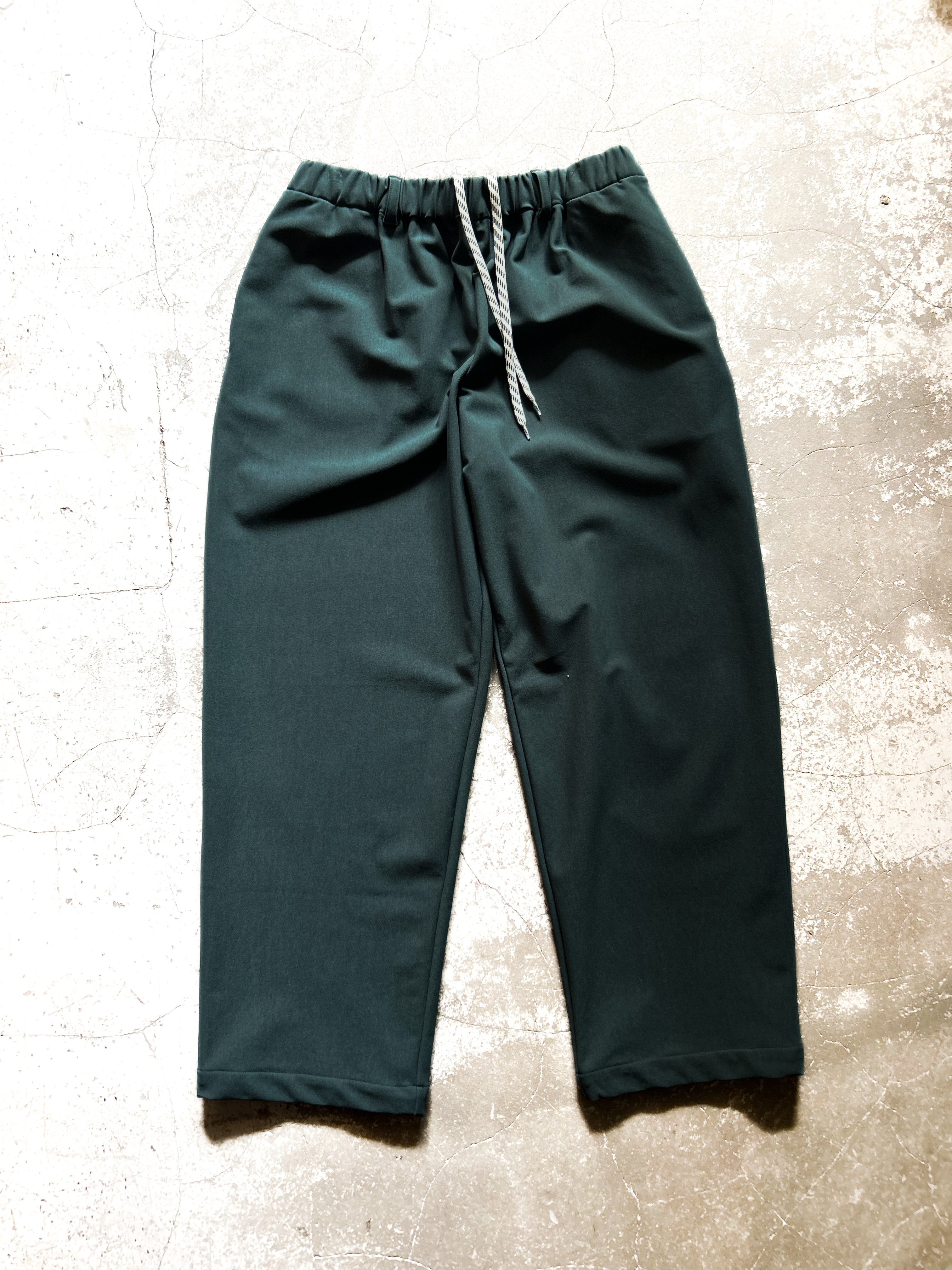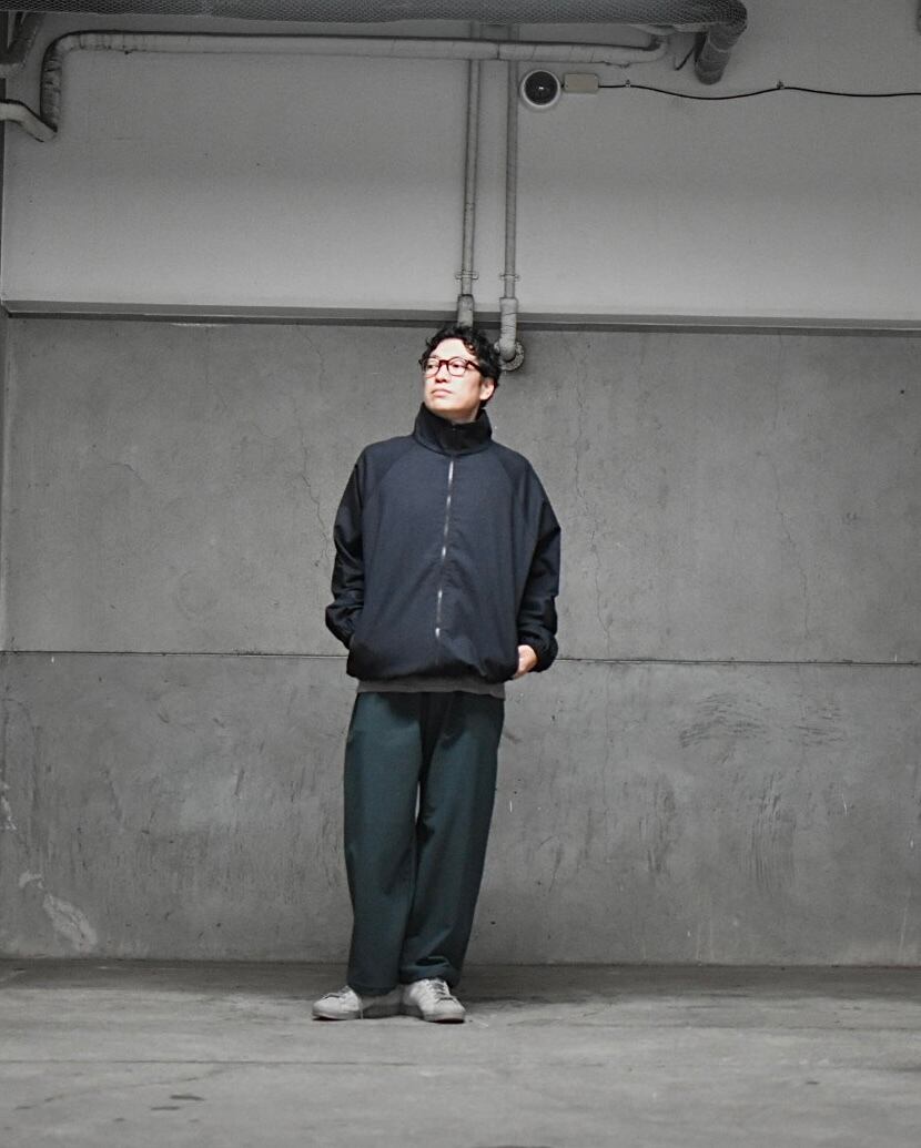 発熱する特殊な機能ジャージー素材LEOTHERMO®を使用した裏起毛ジャージー素材のワイドシルエットのパンツ